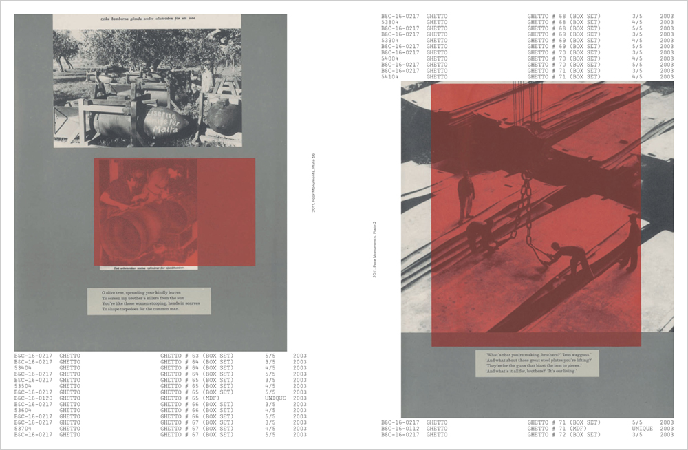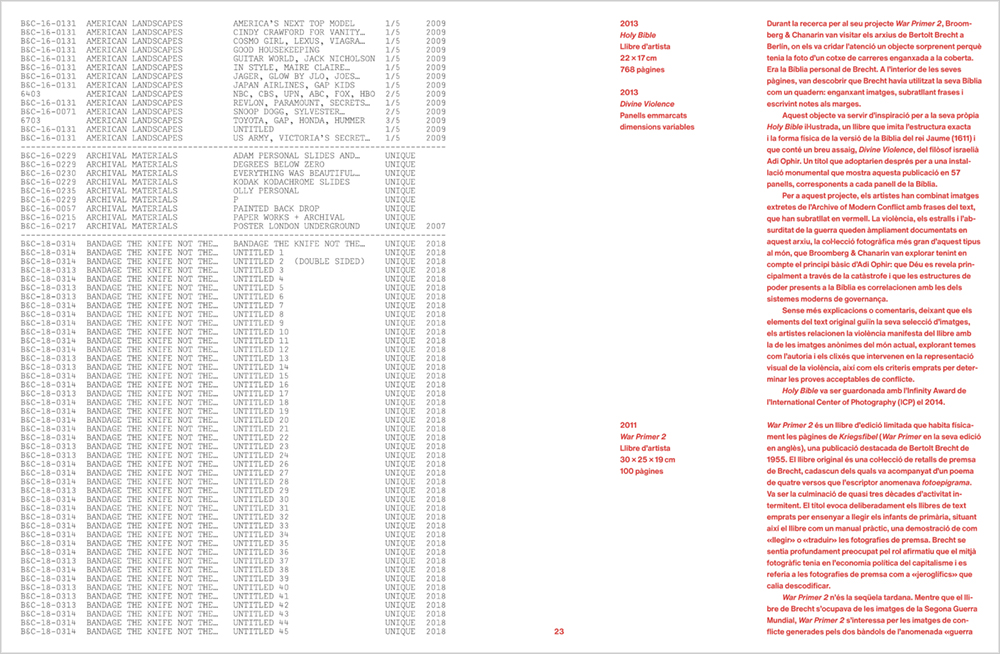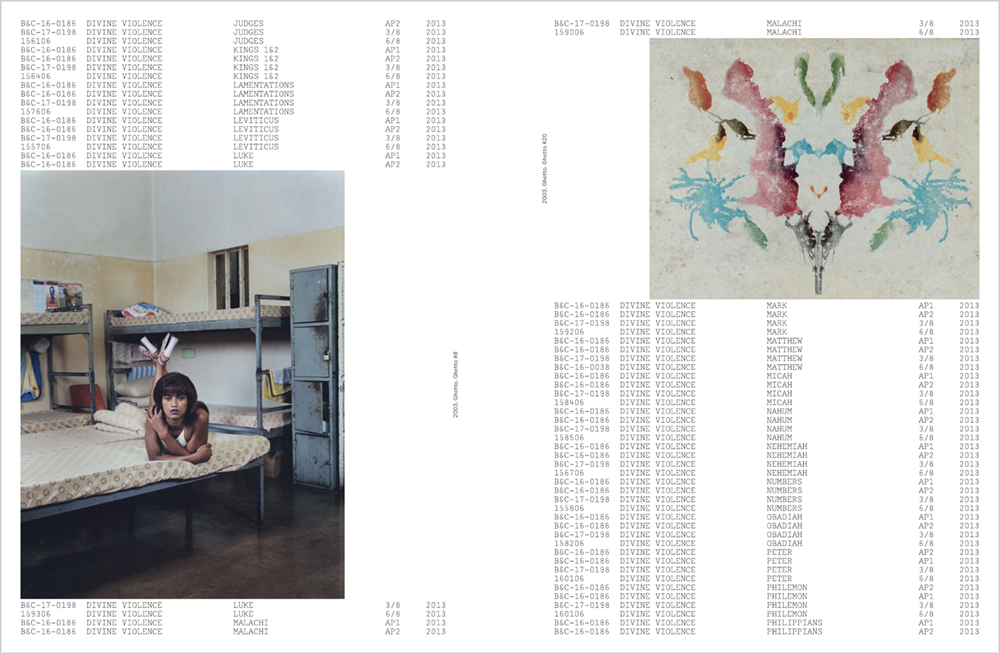 Sense més explicacions o comentaris, deixant que els elements del text original guiïn la seva selecció d’imatges, els artistes relacionen la violència manifesta del llibre amb la de les imatges anònimes del món actual, explorant temes com l’autoria i els clixés que intervenen en la representació visual de la violència, així com els criteris emprats per determinar les proves acceptables de conflicte.