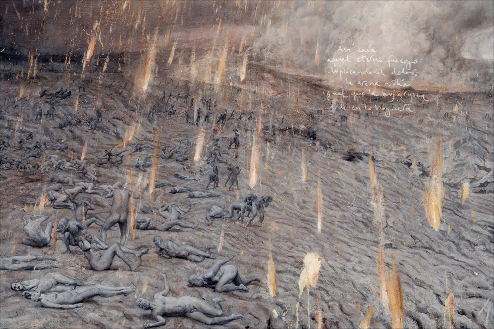 El encuentro de Díaz Alamà con Dante era inevitable, por fortuna para todos nosotros, y el lector de este libro hará bien si acude a contemplar los cuadros originales, que respetan, o mejor dicho completan, el pormenor de los versos dantescos sin renunciar a dos elementos fundamentales: la libertad onírica o fantástica que propicia el relato y la impresionante extensión de los paisajes.