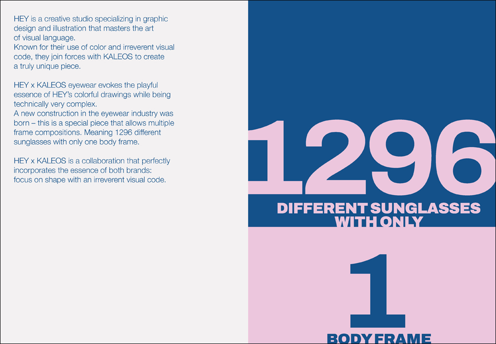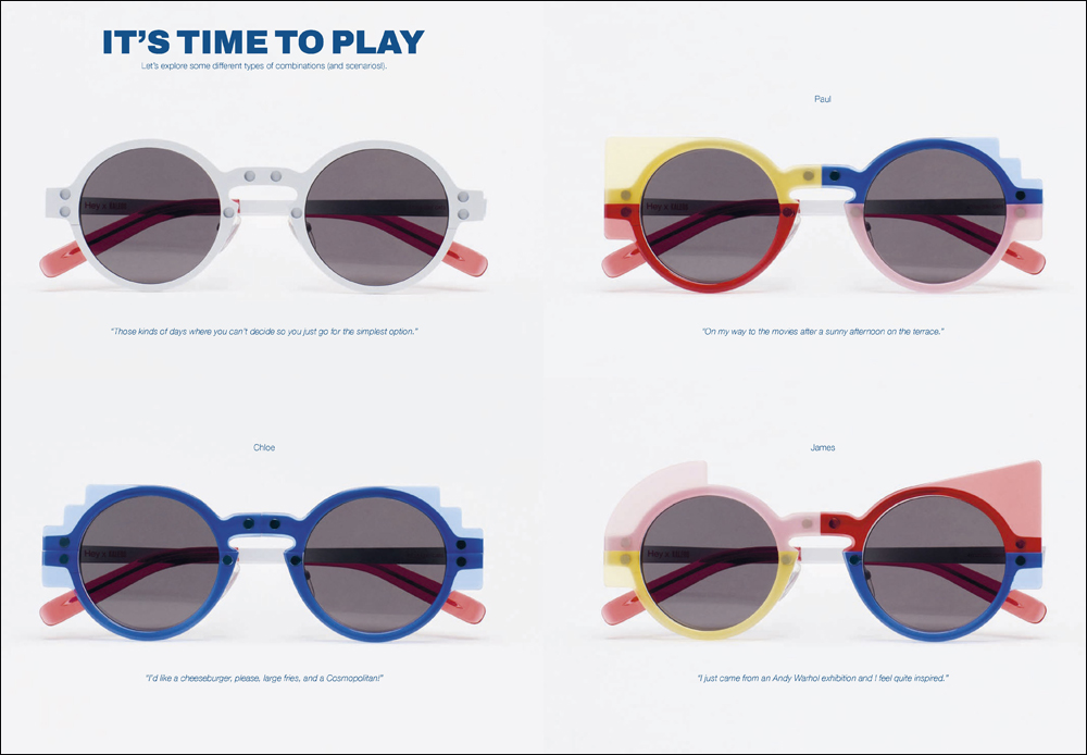 1296 gafas de sol diferentes con 1 sola estructura. Esta pieza única que se puede personalizar con diferentes colores y formas se adapta a cualquier tipo de escenario y personalidad.