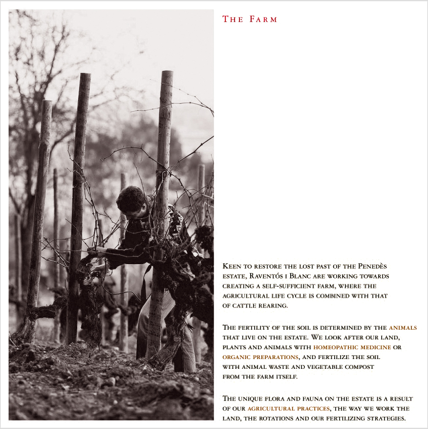 Una historia de más de 500 años: una finca con una tradición vitivinícola en manos de la misma familia desde 1497. Un hombre, Josep Maria Raventós i Blanc, que en el año 1986 creó un vino para estar entre los grandes espumosos del mundo. Un presente y un futuro Cona del riu Anoia, unos compromisos sinceros con nuestra manera de trabajar: Origen Valle del riu Anoia, 100% vinificación y elaboración propia, mínimo 50% viñas propias, 100% viticultura orgánica, 100% variedades autóctonas, crianza mínima 18 meses, siempre de añada.