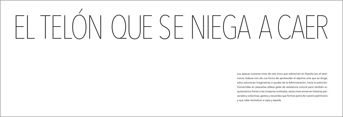 Fila 7 es el resultado de un periplo de 20.000 kilómetros por las carreteras de la geografía española en busca de los últimos cines de sala única que todavía sobreviven en nuestro país. Aunque puedan representar un cine de otra época, lo cierto es que estas salas reivindican con orgullo su lugar en un mundo, el actual, sobresaturado de propuestas audiovisuales de todo tipo pero cada vez más carente de experiencias únicas y personales.
