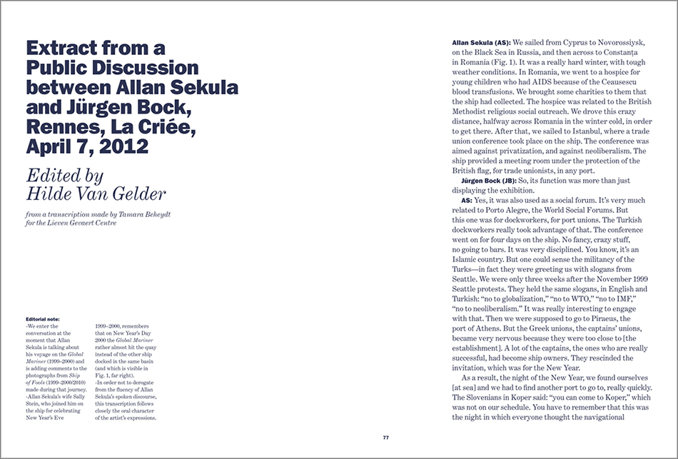 In all his works sekula laments the loss of the sea due to a global economy that idealises a connected world. Sekula’s work will be remembered as one of modern photography’s greatest efforts to erect a monument, a far from grandiloquent one, to the cosmopolitan proletariat.