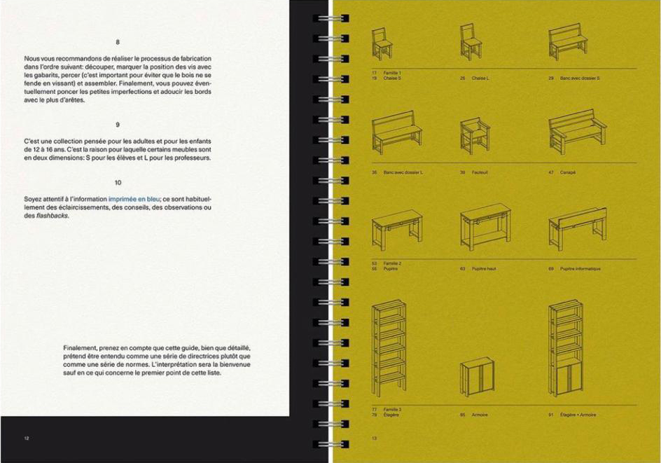 Plus que le résultat du travail réalisé, ces pages contiennent tout ce qui a été nécessaire pour la fabrication de la collection de mobilier conçue pour l’école CEM Kamanar.