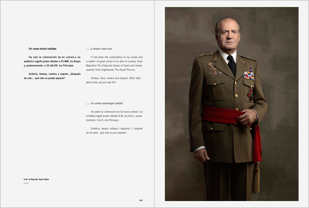 En RETRA apreciamos la evolución de sus retratos, que culminan con los de SS.MM. los Reyes y SS.AA.RR. los Príncipes. KRON constituye el eje central de su crítica social. Y en TRADIKCIONES nos invita a escapar de nuestras rutinas carcelarias, a través de 365 imágenes registradas durante un año.