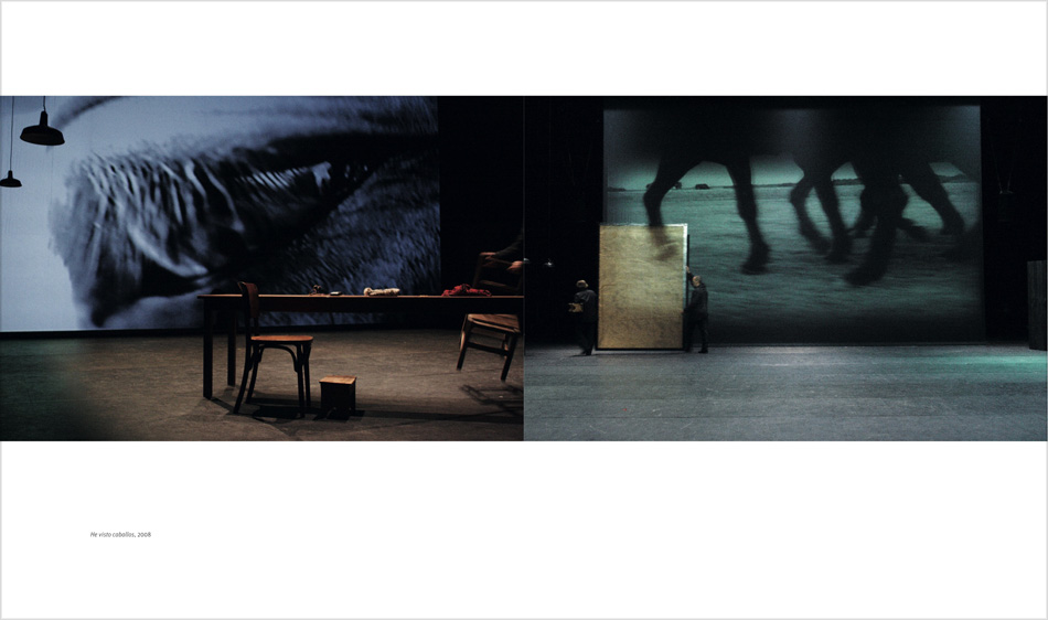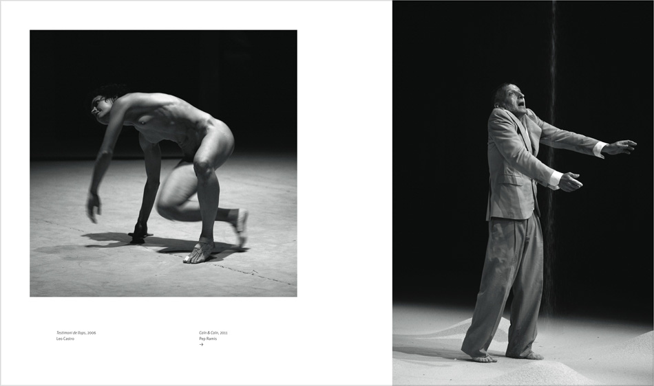 En él presentamos, por un lado, fotografías de Jordi Bover que, además de la fuerza visual y la profundidad que contienen, nos permiten observar diversos aspectos de nuestro trabajo: el movimiento, el uso de los objetos, la iluminación, la gestualidad y la presencia, las tensiones del espacio y algunos códigos y herramientas que hemos utilizado. Por otro lado, incorporamos las voces de personas que han seguido la evolución del grupo, su mirada precisa sobre la manera en que habitamos la escena o construimos una dramaturgia fragmentada que se asienta en diferentes lenguajes y en la fuerza de los intérpretes.